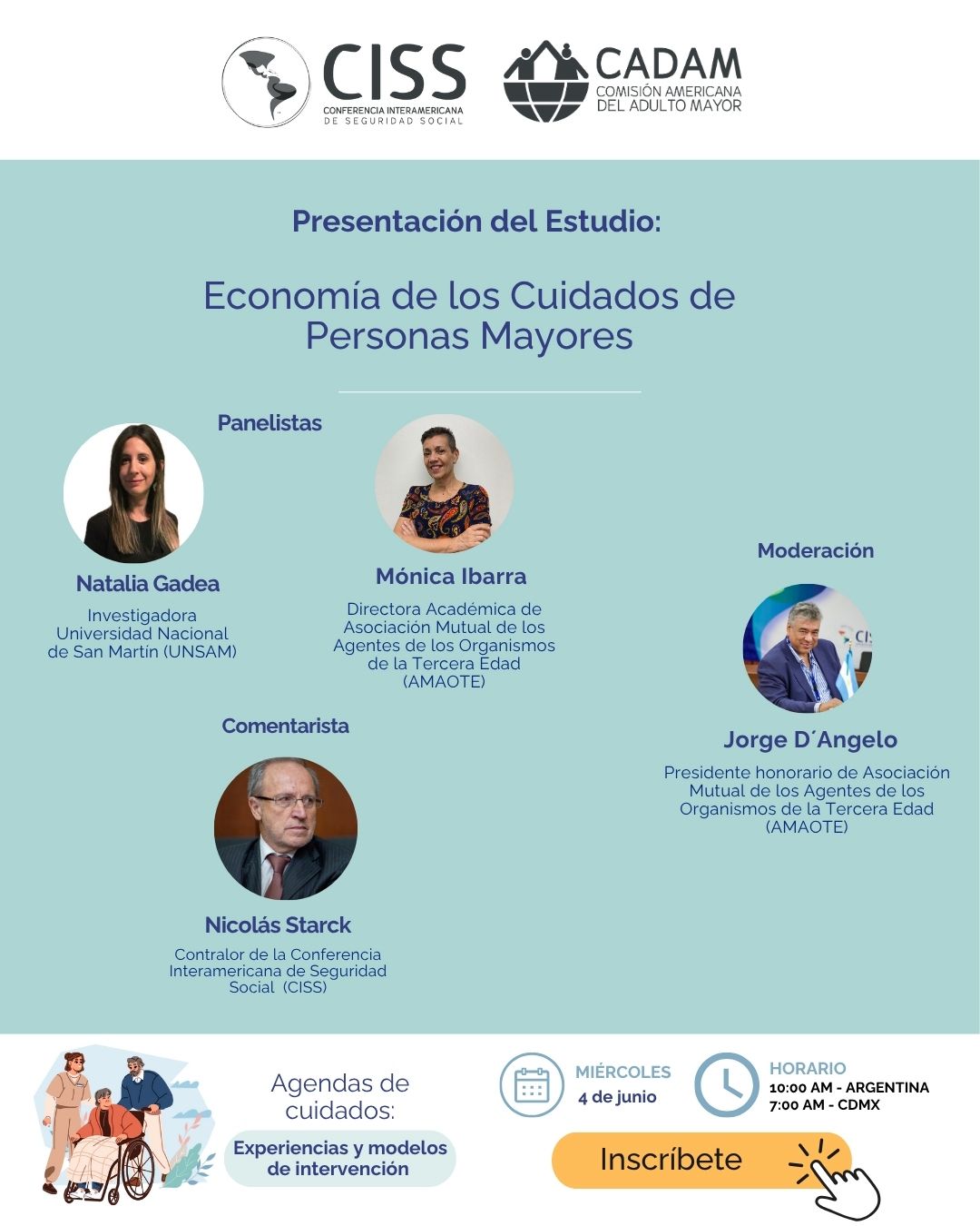 Los próximos 3 y 4 de junio de 2025, la Ciudad Autónoma de Buenos Aires recibirá a referentes de todo el continente americano en el marco del evento “Agendas de Cuidados: Experiencias y Modelos de Intervención”, organizado por la Comisión Americana del Adulto Mayor y la Subregión Cono Sur de la Conferencia Interamericana de Seguridad Social (CISS). La cita tendrá lugar en las sedes de AMAOTE y el Salón Montevideo de la Legislatura porteña.